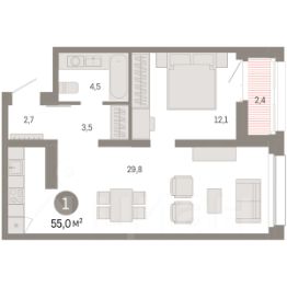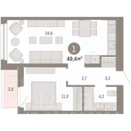 Продается 1-комн. квартира от застройщика с первичной отделкой в ЖК ''Нефть'' на 6 этаже. Общая площадь: 49.4 кв.м., жилая: 11.9 кв.м., площадь просторной кухни-гостиной: 24.6 кв.м. Все окна выходят на одну сторону. В квартире одна лоджия, один совмещенный санузел. Высота потолков 2.7 м. Дом монолитный, многоподъездный, переменной этажности, от 7 до 17 этажей. Квартира находится в 6-й секции высотой 7 этажей в корпусе 1. На этаже 6 квартир. В подъезде 1 грузовой лифт. Окончание строительства - 2 квартал 2027 года. Оформление сделки по договору долевого участия. Квартира с кухней-гостиной и одной спальней в квартале ''Нефть''. Особенности планировки: предчистовая отделка, балкон. квартиры в нашей базе: НФТ01-Ж6.6.5. Квартал ''Нефть'' построят в микрорайоне ''нефтяников''. Квартал состоит из четырёх жилых домов 7 — 9 этажей с акцентной башней в 17 этажей, подземными автостоянками и помещениями коммерческого назначения. Квартал находится в юго-западной части Сургута на пересечении Набережного проспекта и улицы Артёма. В районе уже сформированная инфраструктура. Рядом расположены три детских сада, университеты, парк и спортивная база. На первых этажах квартала спроектированы коммерческие помещения под повседневные сервисы для жителей: магазины, кафе, аптеки и другие полезные функции. Дом имеет переменную высотность 717 этажей. Секции высотой 7-9 этажей подразумевают небольшое количество соседей, спокойствие и приватность. Башня высотой в 17 этажей предлагает более динамичный характер проживания, здесь будет комфортно любителям активного городского ритма жизни. Дворы приватные и предназначены только для жителей. По стандартам Брусники зелень занимает 70% территории. В квартале ''Нефть'' озеленение выполнено по принципу долголетия ландшафта: оно плотное, разнообразное и многоярусное. Самый верхний ярус — взрослые деревья со сформированной кроной и высокие кустарники, ниже располагаются массивы кустарников среднего размера, нижний ярус — травы, многолетники и газон. Все растения подобраны с учётом сезонности и календаря цветения и сурового климата северного города. Осенью цвет ландшафта обеспечивает листва деревьев и кустарников, летом — цветение многолетников, зимой — вечнозелёные хвойные растения и кустарники с декоративными свойствами стеблей. #zWCT8m