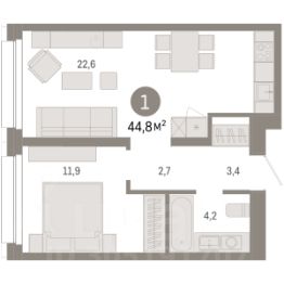 Просторная однокомнатная квартира с первичной отделкой в ЖК ''Нефть'' на 12 этаже. Общая площадь: 47.1 кв.м., жилая: 11.3 кв.м., площадь просторной кухни-гостиной: 19.7 кв.м. Все окна выходят на одну сторону. В квартире одна лоджия, один совмещенный санузел. Высота потолков 2.7 м. Дом монолитный, многоподъездный, переменной этажности, от 7 до 17 этажей. Квартира находится в 3-й секции высотой 17 этажей в корпусе 1. На этаже 8 квартир. В подъезде 1 пассажирский и 1 грузовой лифт. Окончание строительства - 2 квартал 2027 года. Оформление сделки по договору долевого участия. Квартира с кухней-гостиной и одной спальней в квартале ''Нефть''. Особенности планировки: гардеробная, лоджия, предчистовая отделка. квартиры в нашей базе: НФТ01-Ж3.12.5. Квартал ''Нефть'' построят в микрорайоне ''нефтяников''. Квартал состоит из четырёх жилых домов 7 — 9 этажей с акцентной башней в 17 этажей, подземными автостоянками и помещениями коммерческого назначения. Квартал находится в юго-западной части Сургута на пересечении Набережного проспекта и улицы Артёма. В районе уже сформированная инфраструктура. Рядом расположены три детских сада, университеты, парк и спортивная база. На первых этажах квартала спроектированы коммерческие помещения под повседневные сервисы для жителей: магазины, кафе, аптеки и другие полезные функции. Дом имеет переменную высотность 717 этажей. Секции высотой 7-9 этажей подразумевают небольшое количество соседей, спокойствие и приватность. Башня высотой в 17 этажей предлагает более динамичный характер проживания, здесь будет комфортно любителям активного городского ритма жизни. Дворы приватные и предназначены только для жителей. По стандартам Брусники зелень занимает 70% территории. В квартале ''Нефть'' озеленение выполнено по принципу долголетия ландшафта: оно плотное, разнообразное и многоярусное. Самый верхний ярус — взрослые деревья со сформированной кроной и высокие кустарники, ниже располагаются массивы кустарников среднего размера, нижний ярус — травы, многолетники и газон. Все растения подобраны с учётом сезонности и календаря цветения и сурового климата северного города. Осенью цвет ландшафта обеспечивает листва деревьев и кустарников, летом — цветение многолетников, зимой — вечнозелёные хвойные растения и кустарники с декоративными свойствами стеблей. #Z4C7vc
