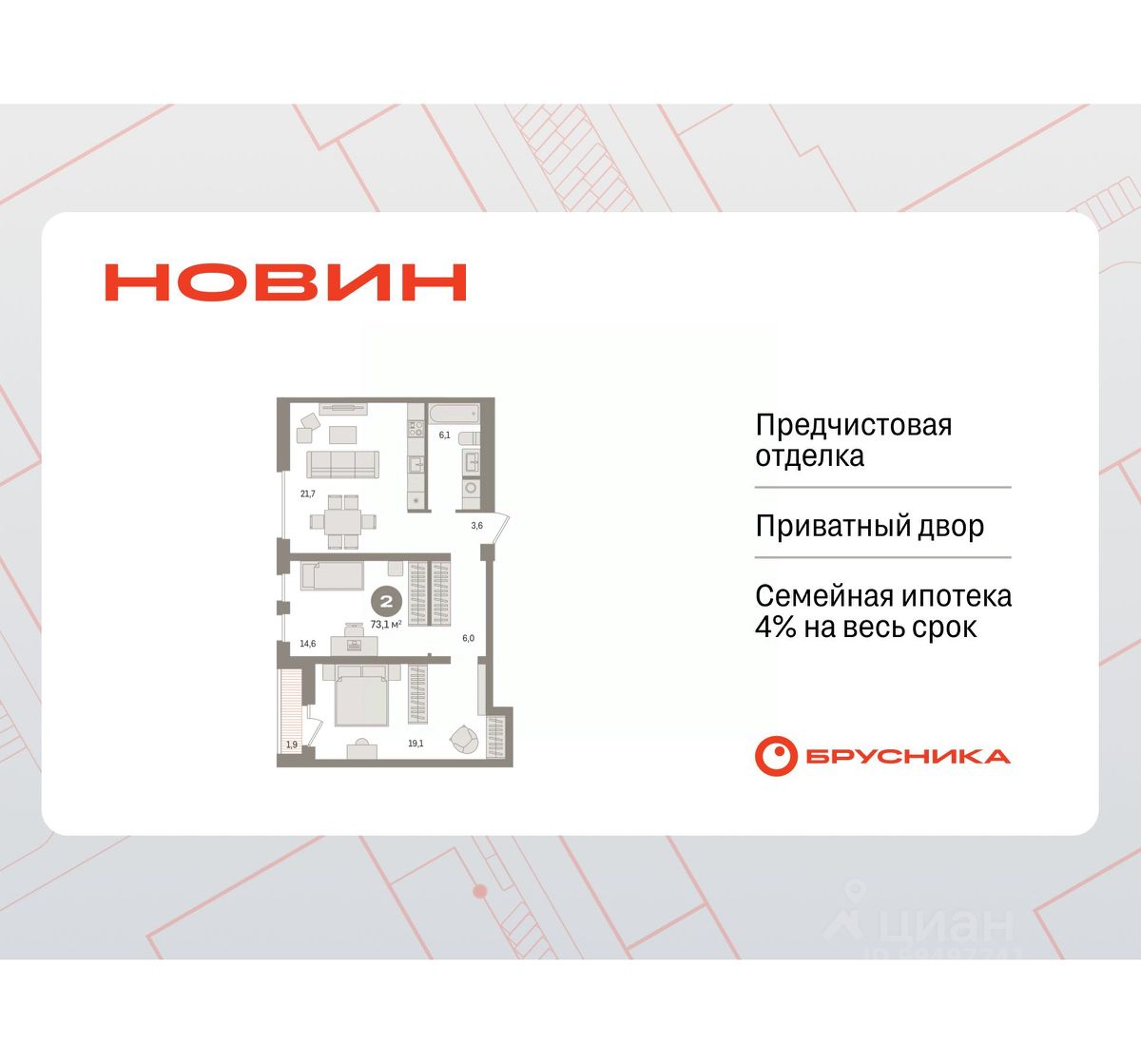 Готовые квартиры со скидкой до 35%. По всем вопросам обращайтесь в офис продаж, мы вам все подробно расскажем! Двухкомнатная квартира с первичной отделкой в ЖК ''Новин'' на 12 этаже. Общая площадь: 73.08 кв.м., жилая: 33.7 кв.м., площадь просторной кухни-гостиной: 21.7 кв.м. Комнаты изолированные, все окна выходят на одну сторону. В квартире одна лоджия, один совмещенный санузел. Высота потолков 2.7 м. Дом монолитный, многоподъездный, переменной этажности, от 8 до 17 этажей. Квартира находится в 4-й секции высотой 17 этажей в корпусе 7. На этаже 6 квартир. В подъезде 1 пассажирский и 1 грузовой лифт. Окончание строительства - 2 квартал 2027 года. Оформление сделки по договору долевого участия. Квартира с кухней-гостиной и двумя спальнями в квартале ''Новин''. Особенности планировки: гардеробная, вид во двор, лоджия, предчистовая отделка. квартиры в нашей базе: НСВ07-Ж4.12.6. Квартал ''Новин'' расположен на западе Сургута в районе с хорошо развитой инфраструктурой. Рядом — парк ''Кедровый Лог'', детские сады, поликлиника, продуктовые магазины и торговые центры. До центра города — 20 минут на автомобиле. Пять домов уже заселены. Ещё три находятся на этапе возведения. Квартал находится в западной части Сургута на пересечении Югорского тракта и улицы Игоря Киртбая. Можно быстро добраться до любой точки города по Югорскому тракту. В районе уже сформированная инфраструктура. Рядом расположены крупные торговые центры, три детских сада, поликлиника, парк и спортивная база. На первых этажах квартала спроектированы коммерческие помещения под повседневные сервисы для жителей: магазины, кафе, аптеки и другие полезные функции. Проектом развития территории предусмотрено строительство детского сада и общеобразовательной школы. Во дворах предусмотрены сценарии для разных категорий жителей, в том числе и площадки для тихого отдыха с фонтаном и арт объектом. Детская площадка раскрывает игровой потенциал территории за счёт разных возможных типов взаимодействий, среди которых присутствуют: контакт с природой, смена уровня игры и контролируемый риск, сотрудничество и игра в команде, а также спокойный сценарий с качелями. Между домами второй очереди мы спроектировали общественное пространство. Здесь также расположатся спортивные и игровые площадки, велопарковки и площадь событий. Главной точкой притяжения станет фонтан. #2sVgE1