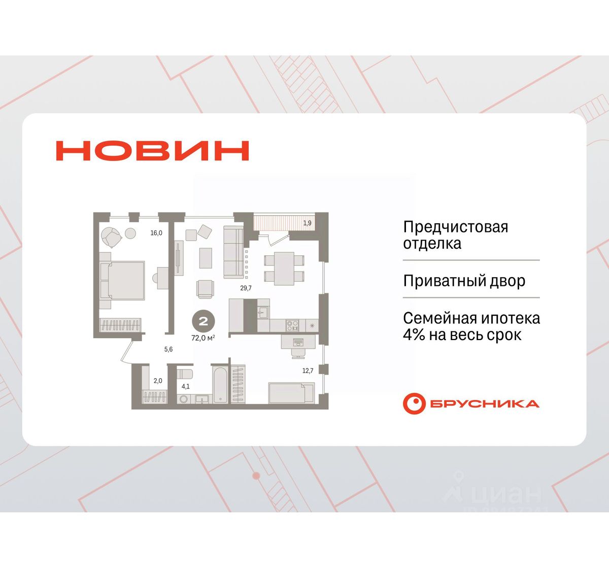 Готовые квартиры со скидкой до 35%. Информация по телефону, мы вам все подробно расскажем! Продается 2-комн. квартира с первичной отделкой в ЖК ''Новин'' на 14 этаже. Общая площадь: 71.99 кв.м., жилая: 28.7 кв.м., площадь просторной кухни-гостиной: 29.7 кв.м. Угловая квартира, окна oбecпeчивaют paвнoмepнoe ocвeщeниe в тeчeниe дня. В квартире одна лоджия, один совмещенный санузел. Высота потолков 2.7 м. Дом монолитный, многоподъездный, переменной этажности, от 8 до 17 этажей. Квартира находится в 4-й секции высотой 17 этажей в корпусе 7. На этаже 6 квартир. В подъезде 1 пассажирский и 1 грузовой лифт. Окончание строительства - 2 квартал 2027 года. Оформление сделки по договору долевого участия. Квартира с кухней-гостиной и двумя спальнями в квартале ''Новин''. Особенности планировки: гардеробная, лоджия, разнесённые спальни, предчистовая отделка. квартиры в нашей базе: НСВ07-Ж4.14.2. Квартал ''Новин'' расположен на западе Сургута в районе с хорошо развитой инфраструктурой. Рядом — парк ''Кедровый Лог'', детские сады, поликлиника, продуктовые магазины и торговые центры. До центра города — 20 минут на автомобиле. Пять домов уже заселены. Ещё три находятся на этапе возведения. Квартал находится в западной части Сургута на пересечении Югорского тракта и улицы Игоря Киртбая. Можно быстро добраться до любой точки города по Югорскому тракту. В районе уже сформированная инфраструктура. Рядом расположены крупные торговые центры, три детских сада, поликлиника, парк и спортивная база. На первых этажах квартала спроектированы коммерческие помещения под повседневные сервисы для жителей: магазины, кафе, аптеки и другие полезные функции. Проектом развития территории предусмотрено строительство детского сада и общеобразовательной школы. Во дворах предусмотрены сценарии для разных категорий жителей, в том числе и площадки для тихого отдыха с фонтаном и арт объектом. Детская площадка раскрывает игровой потенциал территории за счёт разных возможных типов взаимодействий, среди которых присутствуют: контакт с природой, смена уровня игры и контролируемый риск, сотрудничество и игра в команде, а также спокойный сценарий с качелями. Между домами второй очереди мы спроектировали общественное пространство. Здесь также расположатся спортивные и игровые площадки, велопарковки и площадь событий. Главной точкой притяжения станет фонтан. #Z5V9DC