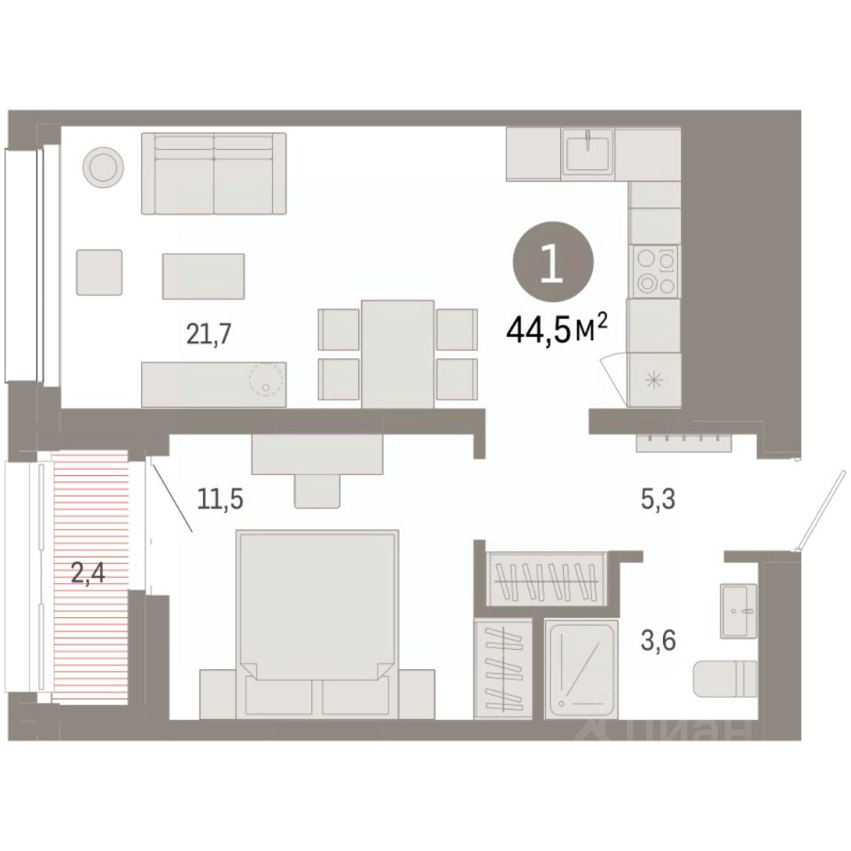 Продается однокомнатная квартира от застройщика с первичной отделкой в ЖК ''Нефть'' на 10 этаже. Общая площадь: 44.5 кв.м., жилая: 11.5 кв.м., площадь просторной кухни-гостиной: 21.7 кв.м. Все окна выходят на одну сторону. В квартире одна лоджия, один совмещенный санузел. Высота потолков 2.7 м. Дом монолитный, многоподъездный, переменной этажности, от 7 до 17 этажей. Квартира находится в 3-й секции высотой 17 этажей в корпусе 1. На этаже 8 квартир. В подъезде 1 пассажирский и 1 грузовой лифт. Окончание строительства - 2 квартал 2027 года. Оформление сделки по договору долевого участия. Квартира с кухней-гостиной и одной спальней в квартале ''Нефть''. Особенности планировки: вид во двор, лоджия, предчистовая отделка. квартиры в нашей базе: НФТ01-Ж3.10.8. Квартал ''Нефть'' построят в микрорайоне ''нефтяников''. Квартал состоит из четырёх жилых домов 7 — 9 этажей с акцентной башней в 17 этажей, подземными автостоянками и помещениями коммерческого назначения. Квартал находится в юго-западной части Сургута на пересечении Набережного проспекта и улицы Артёма. В районе уже сформированная инфраструктура. Рядом расположены три детских сада, университеты, парк и спортивная база. На первых этажах квартала спроектированы коммерческие помещения под повседневные сервисы для жителей: магазины, кафе, аптеки и другие полезные функции. Дом имеет переменную высотность 717 этажей. Секции высотой 7-9 этажей подразумевают небольшое количество соседей, спокойствие и приватность. Башня высотой в 17 этажей предлагает более динамичный характер проживания, здесь будет комфортно любителям активного городского ритма жизни. Дворы приватные и предназначены только для жителей. По стандартам Брусники зелень занимает 70% территории. В квартале ''Нефть'' озеленение выполнено по принципу долголетия ландшафта: оно плотное, разнообразное и многоярусное. Самый верхний ярус — взрослые деревья со сформированной кроной и высокие кустарники, ниже располагаются массивы кустарников среднего размера, нижний ярус — травы, многолетники и газон. Все растения подобраны с учётом сезонности и календаря цветения и сурового климата северного города. Осенью цвет ландшафта обеспечивает листва деревьев и кустарников, летом — цветение многолетников, зимой — вечнозелёные хвойные растения и кустарники с декоративными свойствами стеблей. #zSvgbo