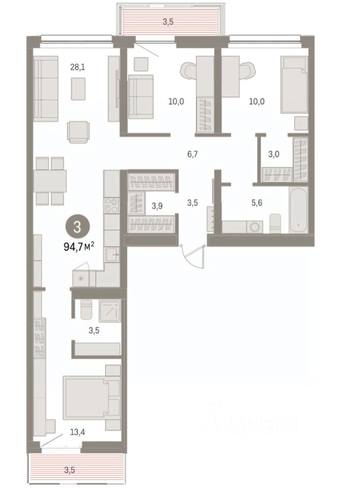 Трехкомнатная квартира с европланировкой и первичной отделкой в ЖК ''Нефть'' на 6 этаже. Общая площадь: 94.7 кв.м., жилая: 49.8 кв.м., общая площадь гостиной-столовой с кухонной зоной: 33 кв.м. Европланировка, кухня-гостиная - идеальный вариант для тех, кто любит часто принимать гостей. Квартира - распашонка, без проходных комнат, окна выходят на paзные стороны дома. В квартире два балкона, два совмещенных санузла. Терраса представляет собой роскошную зону отдыха для проведение вечеров в кругу семьи и друзей или организация вечеринок. Высота потолков 2.7 м. Дом монолитный, многоподъездный, переменной этажности, от 7 до 17 этажей. Квартира находится во 2-й секции высотой 9 этажей в корпусе 1. На этаже 3 квартиры. В подъезде 1 пассажирский и 1 грузовой лифт. Окончание строительства - 2 квартал 2027 года. Оформление сделки по договору долевого участия. Квартира с кухней-гостиной и тремя спальнями в квартале ''Нефть''. Особенности планировки: гардеробная, вид во двор, разнесённые спальни, предчистовая отделка, мастер-спальня, балкон. квартиры в нашей базе: НФТ01-Ж2.6.1. Квартал ''Нефть'' построят в микрорайоне ''нефтяников''. Квартал состоит из четырёх жилых домов 7 — 9 этажей с акцентной башней в 17 этажей, подземными автостоянками и помещениями коммерческого назначения. Квартал находится в юго-западной части Сургута на пересечении Набережного проспекта и улицы Артёма. В районе уже сформированная инфраструктура. Рядом расположены три детских сада, университеты, парк и спортивная база. На первых этажах квартала спроектированы коммерческие помещения под повседневные сервисы для жителей: магазины, кафе, аптеки и другие полезные функции. Дом имеет переменную высотность 717 этажей. Секции высотой 7-9 этажей подразумевают небольшое количество соседей, спокойствие и приватность. Башня высотой в 17 этажей предлагает более динамичный характер проживания, здесь будет комфортно любителям активного городского ритма жизни. Дворы приватные и предназначены только для жителей. По стандартам Брусники зелень занимает 70% территории. В квартале ''Нефть'' озеленение выполнено по принципу долголетия ландшафта: оно плотное, разнообразное и многоярусное. Самый верхний ярус — взрослые деревья со сформированной кроной и высокие кустарники, ниже располагаются массивы кустарников среднего размера, нижний ярус — травы, многолетники и газон. Все растения подобраны с учётом сезонности и календаря цветения и сурового климата северного города. Осенью цвет ландшафта обеспечивает листва деревьев и кустарников, летом — цветение многолетников, зимой — вечнозелёные хвойные растения и кустарники с декоративными свойствами стеблей. #25vgcg