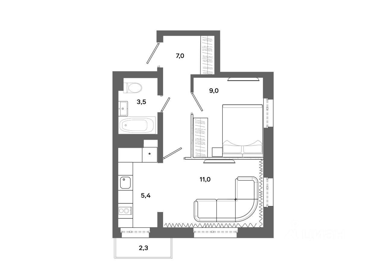 Готовые квартиры со скидкой до 35%. По всем вопросам звоните в офис продаж, наши менеджеры вам все расскажут! Однокомнатная студия от застройщика с предчистовой отделкой в ЖК ''Новин'' на 4 этаже. Общая площадь: 23.16 кв.м., площадь гостиной 12.3 кв.м., из которых 5 кв.м. выделено под кухонную зону. Все окна выходят на одну сторону. В квартире один балкон, один совмещенный санузел. Высота потолков 2.7 м. Дом монолитный, многоподъездный, переменной этажности, от 8 до 17 этажей. Квартира находится в 3-й секции высотой 8 этажей в корпусе 7. На этаже 6 квартир. В подъезде 1 пассажирский и 1 грузовой лифт. Окончание строительства - 2 квартал 2027 года. Оформление сделки по договору долевого участия. Студия в квартале ''Новин''. Особенности планировки: балкон, вид во двор, предчистовая отделка. квартиры в нашей базе: НСВ07-Ж3.4.3. Квартал ''Новин'' расположен на западе Сургута в районе с хорошо развитой инфраструктурой. Рядом — парк ''Кедровый Лог'', детские сады, поликлиника, продуктовые магазины и торговые центры. До центра города — 20 минут на автомобиле. Пять домов уже заселены. Ещё три находятся на этапе возведения. Квартал находится в западной части Сургута на пересечении Югорского тракта и улицы Игоря Киртбая. Можно быстро добраться до любой точки города по Югорскому тракту. В районе уже сформированная инфраструктура. Рядом расположены крупные торговые центры, три детских сада, поликлиника, парк и спортивная база. На первых этажах квартала спроектированы коммерческие помещения под повседневные сервисы для жителей: магазины, кафе, аптеки и другие полезные функции. Проектом развития территории предусмотрено строительство детского сада и общеобразовательной школы. Во дворах предусмотрены сценарии для разных категорий жителей, в том числе и площадки для тихого отдыха с фонтаном и арт объектом. Детская площадка раскрывает игровой потенциал территории за счёт разных возможных типов взаимодействий, среди которых присутствуют: контакт с природой, смена уровня игры и контролируемый риск, сотрудничество и игра в команде, а также спокойный сценарий с качелями. Между домами второй очереди мы спроектировали общественное пространство. Здесь также расположатся спортивные и игровые площадки, велопарковки и площадь событий. Главной точкой притяжения станет фонтан. #ZWeB6f