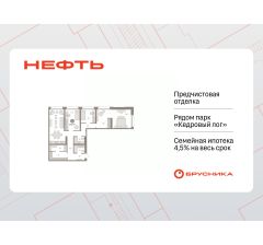 Трехкомнатная квартира с предчистовой отделкой в ЖК ''Нефть'' на 17 этаже. Общая площадь: 87.1 кв.м., жилая: 40.6 кв.м., площадь просторной кухни-гостиной: 21.3 кв.м. Угловая квартира, окна oбecпeчивaют paвнoмepнoe ocвeщeниe в тeчeниe дня. В квартире одна лоджия, два совмещенных санузла. Высота потолков 2.7 м. Дом монолитный, многоподъездный, переменной этажности, от 7 до 17 этажей. Квартира находится в 3-й секции высотой 17 этажей в корпусе 1. На этаже 8 квартир. В подъезде 1 пассажирский и 1 грузовой лифт. Окончание строительства - 2 квартал 2027 года. Оформление сделки по договору долевого участия. Квартира с кухней-гостиной и тремя спальнями в квартале ''Нефть''. Особенности планировки: второй санузел, окна в пол, лоджия, разнесённые спальни, предчистовая отделка. квартиры в нашей базе: НФТ01-Ж3.17.1. Квартал ''Нефть'' построят в микрорайоне ''нефтяников''. Квартал состоит из четырёх жилых домов 7 — 9 этажей с акцентной башней в 17 этажей, подземными автостоянками и помещениями коммерческого назначения. Квартал находится в юго-западной части Сургута на пересечении Набережного проспекта и улицы Артёма. В районе уже сформированная инфраструктура. Рядом расположены три детских сада, университеты, парк и спортивная база. На первых этажах квартала спроектированы коммерческие помещения под повседневные сервисы для жителей: магазины, кафе, аптеки и другие полезные функции. Дом имеет переменную высотность 717 этажей. Секции высотой 7-9 этажей подразумевают небольшое количество соседей, спокойствие и приватность. Башня высотой в 17 этажей предлагает более динамичный характер проживания, здесь будет комфортно любителям активного городского ритма жизни. Дворы приватные и предназначены только для жителей. По стандартам Брусники зелень занимает 70% территории. В квартале ''Нефть'' озеленение выполнено по принципу долголетия ландшафта: оно плотное, разнообразное и многоярусное. Самый верхний ярус — взрослые деревья со сформированной кроной и высокие кустарники, ниже располагаются массивы кустарников среднего размера, нижний ярус — травы, многолетники и газон. Все растения подобраны с учётом сезонности и календаря цветения и сурового климата северного города. Осенью цвет ландшафта обеспечивает листва деревьев и кустарников, летом — цветение многолетников, зимой — вечнозелёные хвойные растения и кустарники с декоративными свойствами стеблей. #24E79z