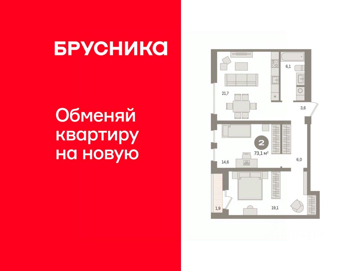 73 м² · Этаж 12 из 17