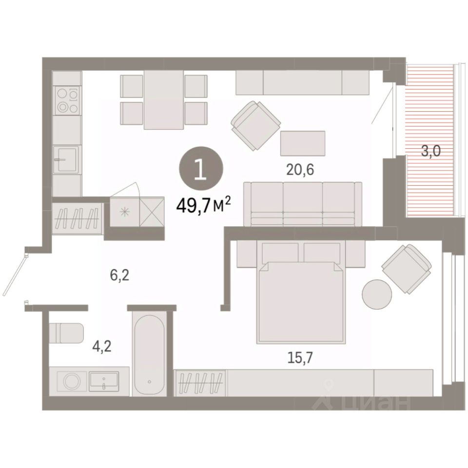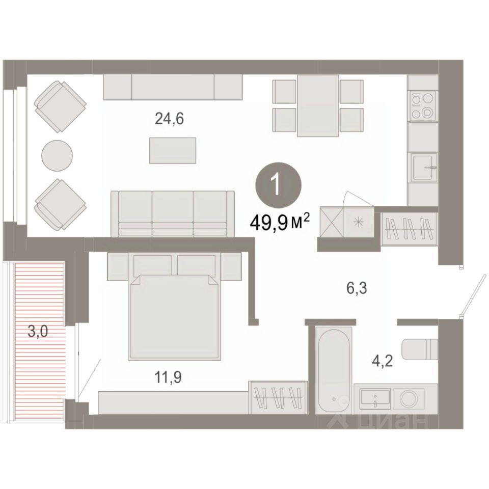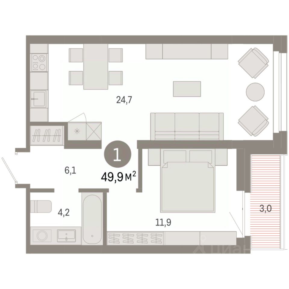 49 м² · Этаж 6 из 7