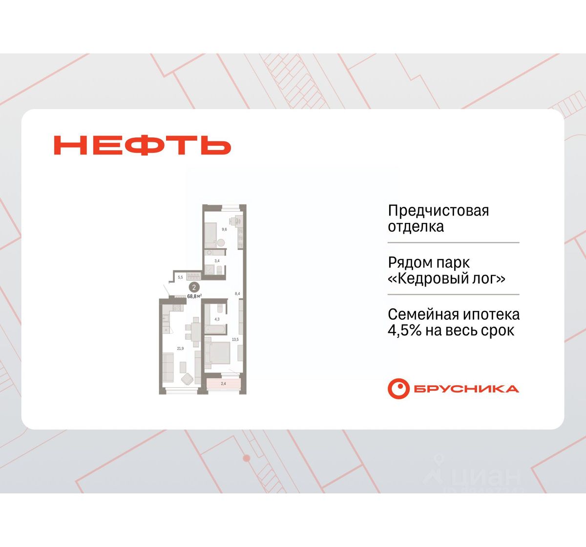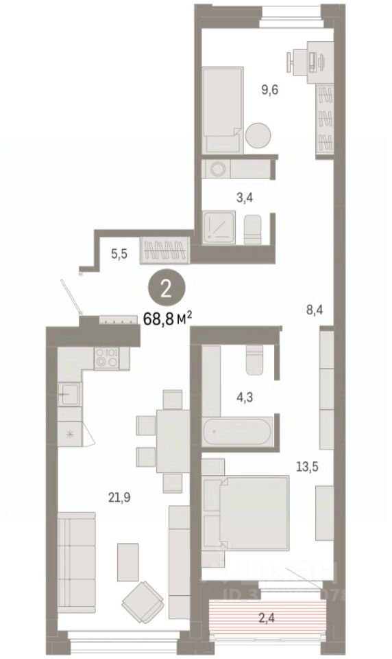 68 м² · Этаж 6 из 9