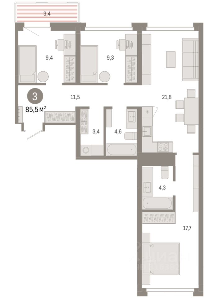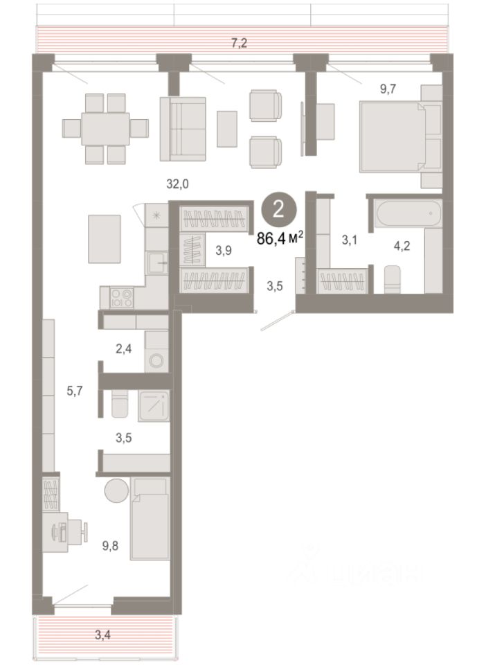 86 м² · Этаж 9 из 9