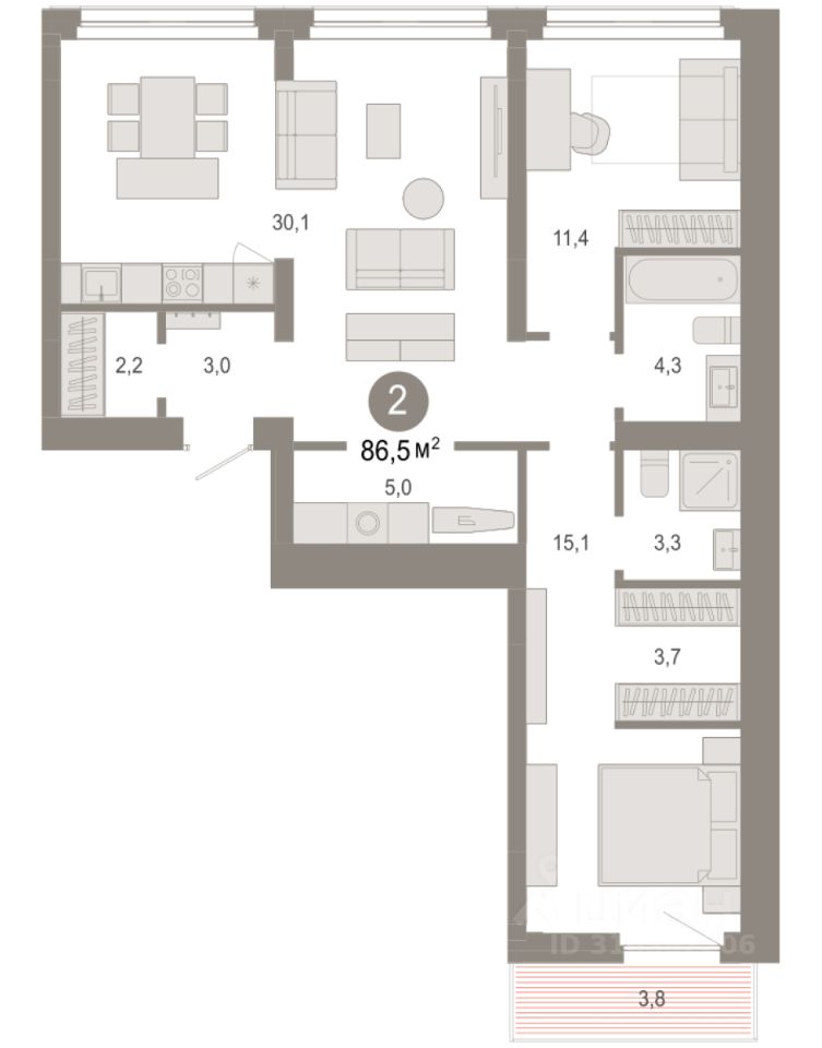 86 м² · Этаж 8 из 9