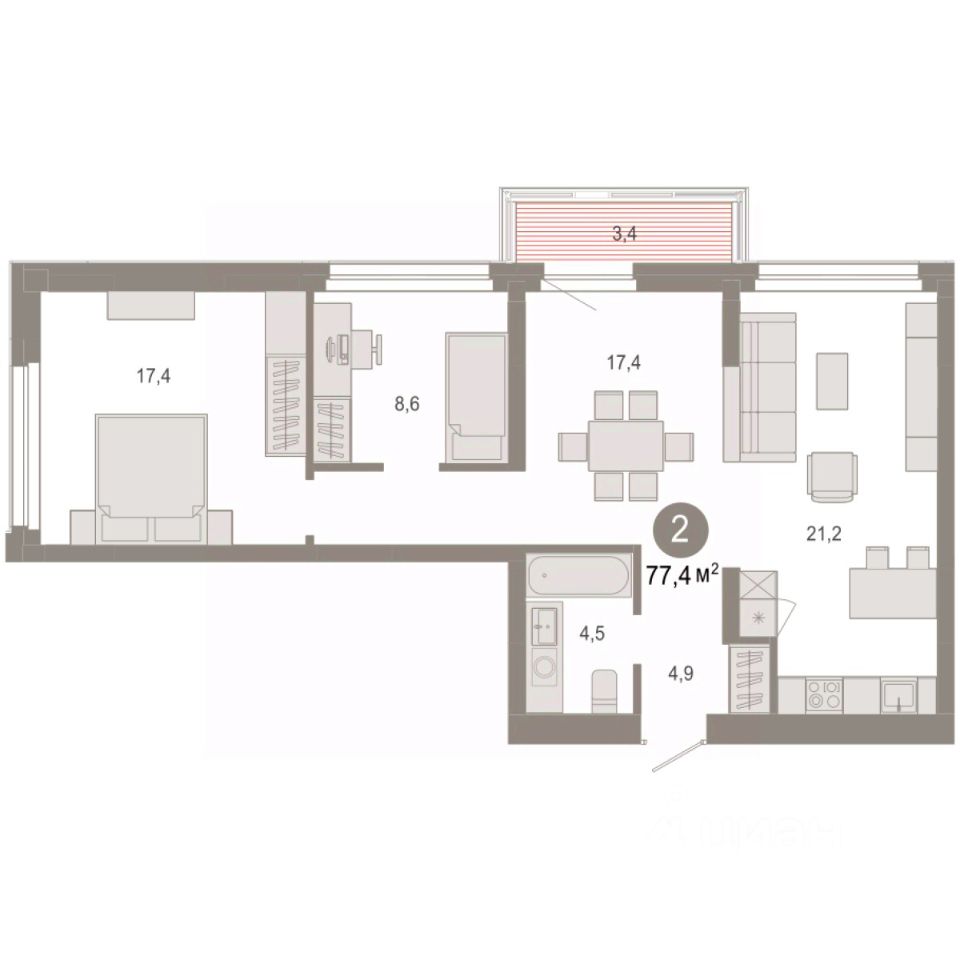 77 м² · Этаж 8 из 9