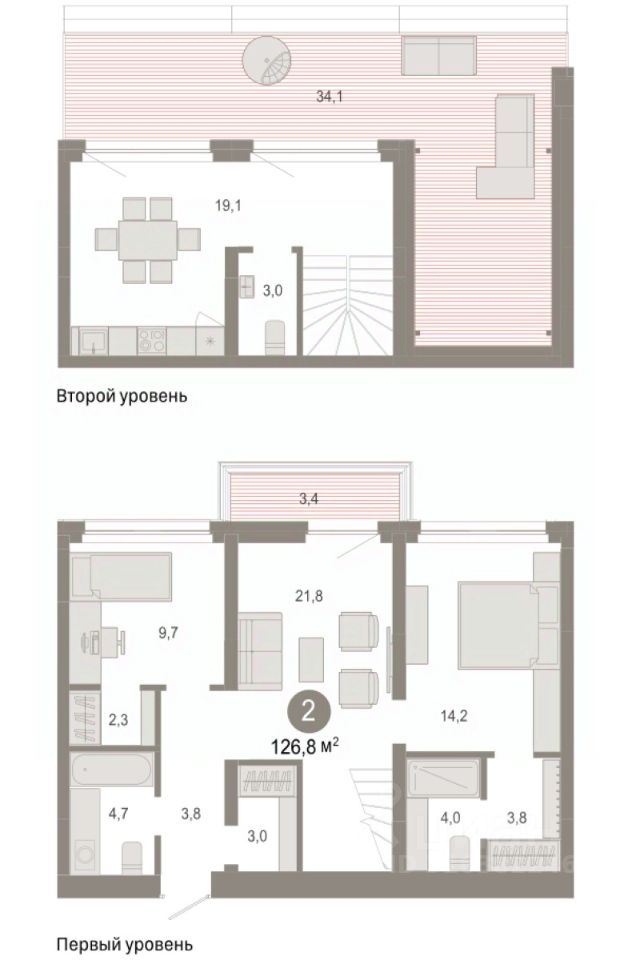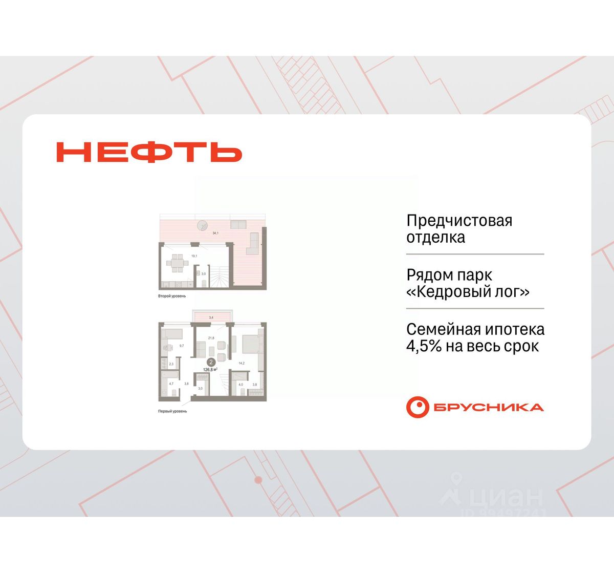 2-комн. квартира с первичной отделкой в ЖК ''Нефть'' на 7 этаже. 2-уровневая квартира, на каждом этаже вы можете выделить различные функциональные зоны. Общая площадь: 126.84 кв.м., жилая: 23.9 кв.м., площадь просторной кухни-гостиной: 19.1 кв.м. Комнаты изолированные, все окна выходят на одну сторону. В квартире один балкон и одна лоджия, один совмещенный и один раздельный санузел. Терраса представляет собой роскошную зону отдыха для проведение вечеров в кругу семьи и друзей или организация вечеринок. Высота потолков 2.7 м. Дом монолитный, многоподъездный, переменной этажности, от 7 до 9 этажей. Квартира находится в 1-й секции высотой 7 этажей в корпусе 2. На этаже 10 квартир. В подъезде 1 пассажирский и 1 грузовой лифт. Окончание строительства - 3 квартал 2027 года. Оформление сделки по договору долевого участия. Двухуровневая квартира с кухней-гостиной и двумя спальнями в квартале ''Нефть''. Особенности планировки: двухуровневая, свободная планировка, балкон, терраса на крыше. квартиры в нашей базе: НФТ02-Ж1.7.6. Квартал ''Нефть'' построят в микрорайоне ''нефтяников''. Квартал состоит из четырёх жилых домов 7 — 9 этажей с акцентной башней в 17 этажей, подземными автостоянками и помещениями коммерческого назначения. Квартал находится в юго-западной части Сургута на пересечении Набережного проспекта и улицы Артёма. В районе уже сформированная инфраструктура. Рядом расположены три детских сада, университеты, парк и спортивная база. На первых этажах квартала спроектированы коммерческие помещения под повседневные сервисы для жителей: магазины, кафе, аптеки и другие полезные функции. Дом имеет переменную высотность 717 этажей. Секции высотой 7-9 этажей подразумевают небольшое количество соседей, спокойствие и приватность. Башня высотой в 17 этажей предлагает более динамичный характер проживания, здесь будет комфортно любителям активного городского ритма жизни. Дворы приватные и предназначены только для жителей. По стандартам Брусники зелень занимает 70% территории. В квартале ''Нефть'' озеленение выполнено по принципу долголетия ландшафта: оно плотное, разнообразное и многоярусное. Самый верхний ярус — взрослые деревья со сформированной кроной и высокие кустарники, ниже располагаются массивы кустарников среднего размера, нижний ярус — травы, многолетники и газон. Все растения подобраны с учётом сезонности и календаря цветения и сурового климата северного города. Осенью цвет ландшафта обеспечивает листва деревьев и кустарников, летом — цветение многолетников, зимой — вечнозелёные хвойные растения и кустарники с декоративными свойствами стеблей. #zSDoWa