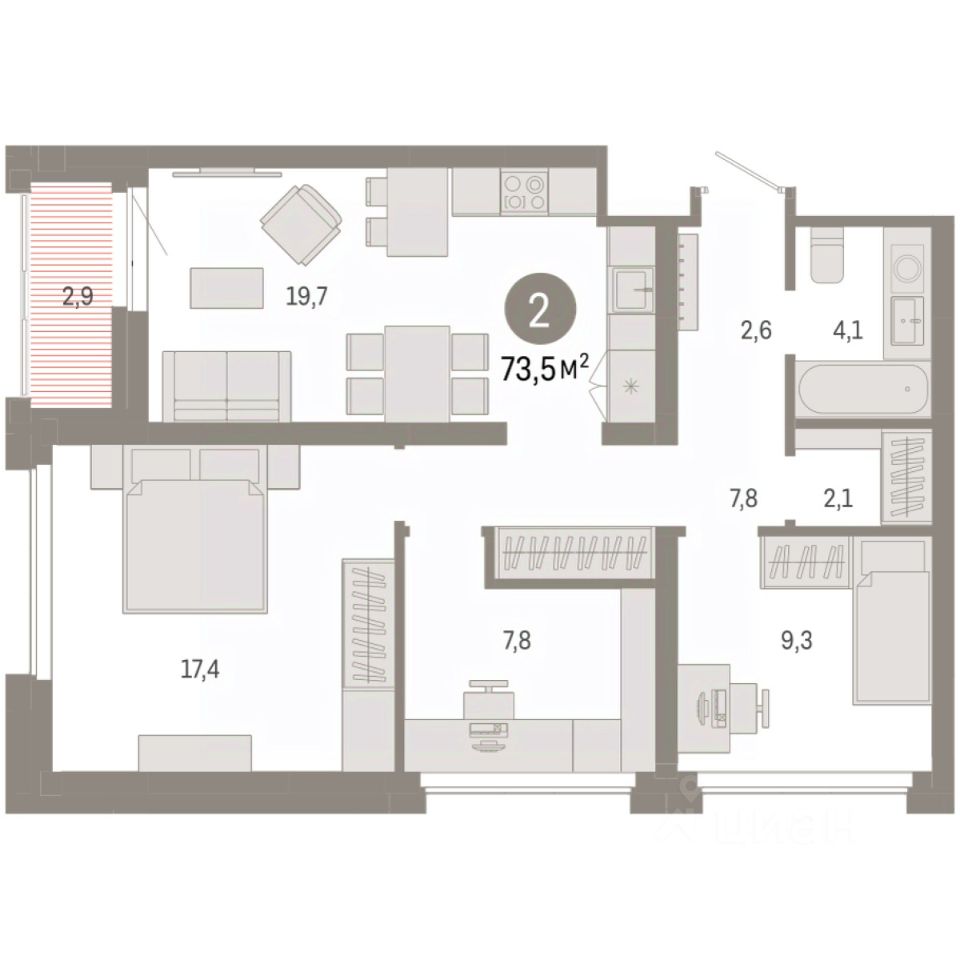 73 м² · Этаж 7 из 9