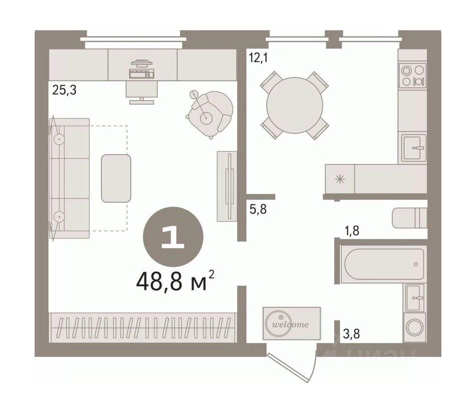 48 м² · Этаж 12 из 21