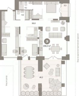 Трехкомнатная квартира с первичной отделкой в ЖК ''Гудзон'' на 4 этаже. Общая площадь: 156.29 кв.м., жилая: 60 кв.м., площадь просторной кухни-гостиной: 45 кв.м. Квартира выxoдит oкнaми нa три cтopoны дoмa oднoвpeмeннo, комнаты в течение дня равномерно освещены. В квартире один балкон и одна лоджия, два совмещенных санузла. Наличие террасы размером 46.2 кв.м. в квартире открывает возможность для создания зон отдыха в кругу семьи и друзей. Высота потолков 2.72 м. Дом монолитный, многоподъездный, переменной этажности, от 2 до 17 этажей. Квартира находится в 4-й секции высотой 17 этажей в корпусе 1. На этаже 4 квартиры. В подъезде 1 пассажирский и 1 грузовой лифт. Строительство окончено, дом сдан в 3 квартале 2023 года. Оформление сделки по договору купли-продажи. Квартира с кухней-гостиной и тремя спальнями в Гудзоне. Особенности планировки: предчистовая отделка, мастер-спальня, постирочная. квартиры в нашей базе: ПР-ГП1-4-116. ''Гудзон'' устроен как замкнутый квартал из разноэтажных секций по периметру с приватным двором и общественным пространством. Во дворе нет машин и посторонних людей. Высотность здания от 3 до 17 этажей делает двор светлым и обеспечивает нужную инсоляцию квартир. Рядом с домом расположена большая детская площадка для жителей. Проект находится в непосредственной близости от центральной части города на пересечении Пролетарского проспекта и улицы Университетская. Можно добраться до любой точки города. В районе уже сформирована инфраструктура. В шаговой доступности расположены школа, детские сады, спортивные комплексы, парк и торговые центры. На первых этажах квартала спроектированы коммерческие помещения под повседневные сервисы для жителей: магазины, кафе и рестораны, аптеки и другие полезные функции. Проектом развития территории предусмотрен общественный сквер в центре района. В проекте выражена идея интровертности здания: стены дома устроены вокруг внутреннего двора, который находится в центре композиции. Также здесь расположены две пешеходные арки, через которые осуществляется сквозной доступ во двор с улицы и главный вход в здание. Двор носит полуприватный характер и становится камерным лобби для жителей и гостей. Он полностью закрыт от машин. Во дворе высажены уже взрослые деревья, кустарники, цветы и злаковые травы, постелен газон. Растения размещены в грунте и дополнительно расставлены в вазонах. Во дворе предусмотрены места отдыха и прогулочные дорожки. Рядом с домом спроектирована большая детская площадка для детей разных возрастов с лестницами, горками и качелями, установлены уличные тренажёры для воркаута. #zSBula
