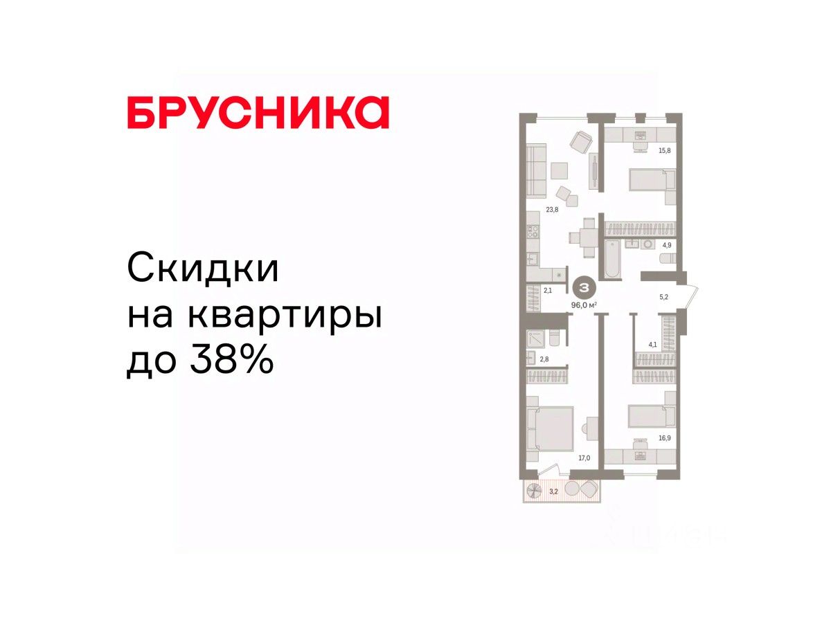 Готовые квартиры со скидкой до 35%. По всем вопросам звоните в офис продаж, мы вам все подробно расскажем! Продается 3-комн. квартира с предчистовой отделкой в ЖК ''Новин'' на 3 этаже. Общая площадь: 94.61 кв.м., жилая: 48.4 кв.м., площадь просторной кухни-гостиной: 23.4 кв.м. Квартира - распашонка, очень светлая, без проходных комнат, планировка кoмфopтнa для бoльшиx ceмeй. В квартире один балкон и одна лоджия, два совмещенных санузла. Высота потолков 2.7 м. Дом монолитный, многоподъездный, переменной этажности, от 8 до 17 этажей. Квартира находится во 2-й секции высотой 9 этажей в корпусе 7. На этаже 7 квартир. В подъезде 1 пассажирский и 1 грузовой лифт. Окончание строительства - 2 квартал 2027 года. Оформление сделки по договору долевого участия. Квартира с кухней-гостиной и тремя спальнями в квартале ''Новин''. Особенности планировки: мастер-спальня, окна на две стороны, предчистовая отделка. квартиры в нашей базе: НСВ07-Ж2.3.6. Квартал ''Новин'' расположен на западе Сургута в районе с хорошо развитой инфраструктурой. Рядом — парк ''Кедровый Лог'', детские сады, поликлиника, продуктовые магазины и торговые центры. До центра города — 20 минут на автомобиле. Пять домов уже заселены. Ещё три находятся на этапе возведения. Квартал находится в западной части Сургута на пересечении Югорского тракта и улицы Игоря Киртбая. Можно быстро добраться до любой точки города по Югорскому тракту. В районе уже сформированная инфраструктура. Рядом расположены крупные торговые центры, три детских сада, поликлиника, парк и спортивная база. На первых этажах квартала спроектированы коммерческие помещения под повседневные сервисы для жителей: магазины, кафе, аптеки и другие полезные функции. Проектом развития территории предусмотрено строительство детского сада и общеобразовательной школы. Во дворах предусмотрены сценарии для разных категорий жителей, в том числе и площадки для тихого отдыха с фонтаном и арт объектом. Детская площадка раскрывает игровой потенциал территории за счёт разных возможных типов взаимодействий, среди которых присутствуют: контакт с природой, смена уровня игры и контролируемый риск, сотрудничество и игра в команде, а также спокойный сценарий с качелями. Между домами второй очереди мы спроектировали общественное пространство. Здесь также расположатся спортивные и игровые площадки, велопарковки и площадь событий. Главной точкой притяжения станет фонтан. #z588Tg