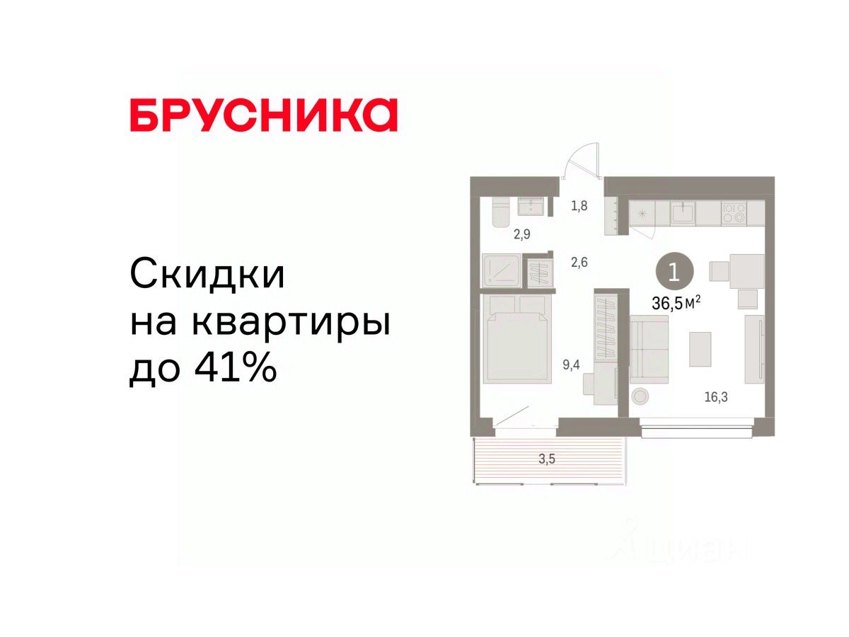 36 м² · Этаж 6 из 9