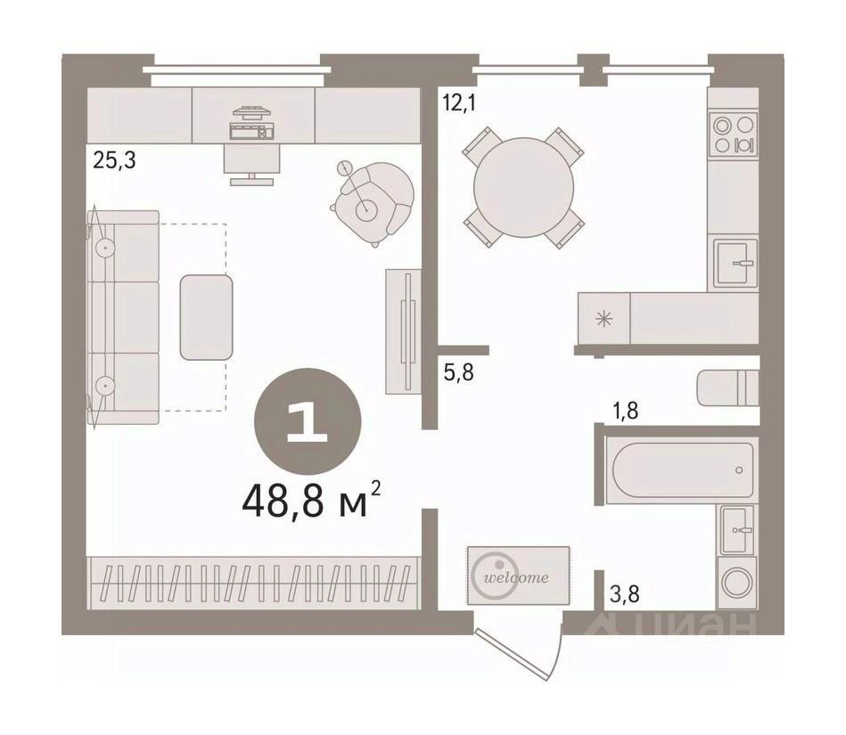 В квартире проживают до 20.02.2026 года. Однокомнатная квартира в центральном районе. Планировка Общая площадь 48,8 кв.м Большую комнату разделили на две части. Сан.узел совмещенный Ремонт В квартире выполнен косметический ремонт: Стены оклеены обоями светлых тонов. Локация Удобная транспортная развязка, несколько остановок, что обеспечивает возможность добраться в любую точку города. Проект Кирпичный дом 1997 года постройки. Открытый двор со своей парковкой. Подъезды чистые. Дом теплый, построен качественно. Юридическая информация Способы покупки: - ипотека - материнский капитал - наличный рассчет Записаться на просмотр можно по телефону. Квартира оформлена на юр.лицо Брусника Обмен и была выкуплена нами в обмен на новую в проекте Брусники. Квартира прошла полную юридическую проверку, не имеет задолженностей и долей несовершеннолетних детей. Все документы полностью готовы к сделке. Полная стоимость в договоре-купли продажи.