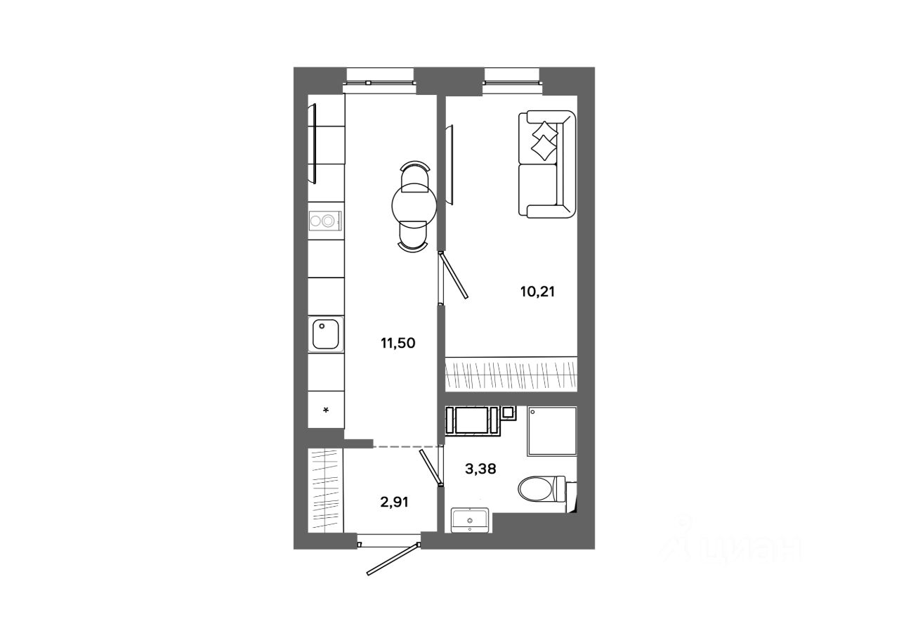 57 м² · Этаж 11 из 19