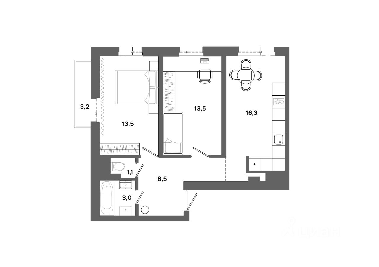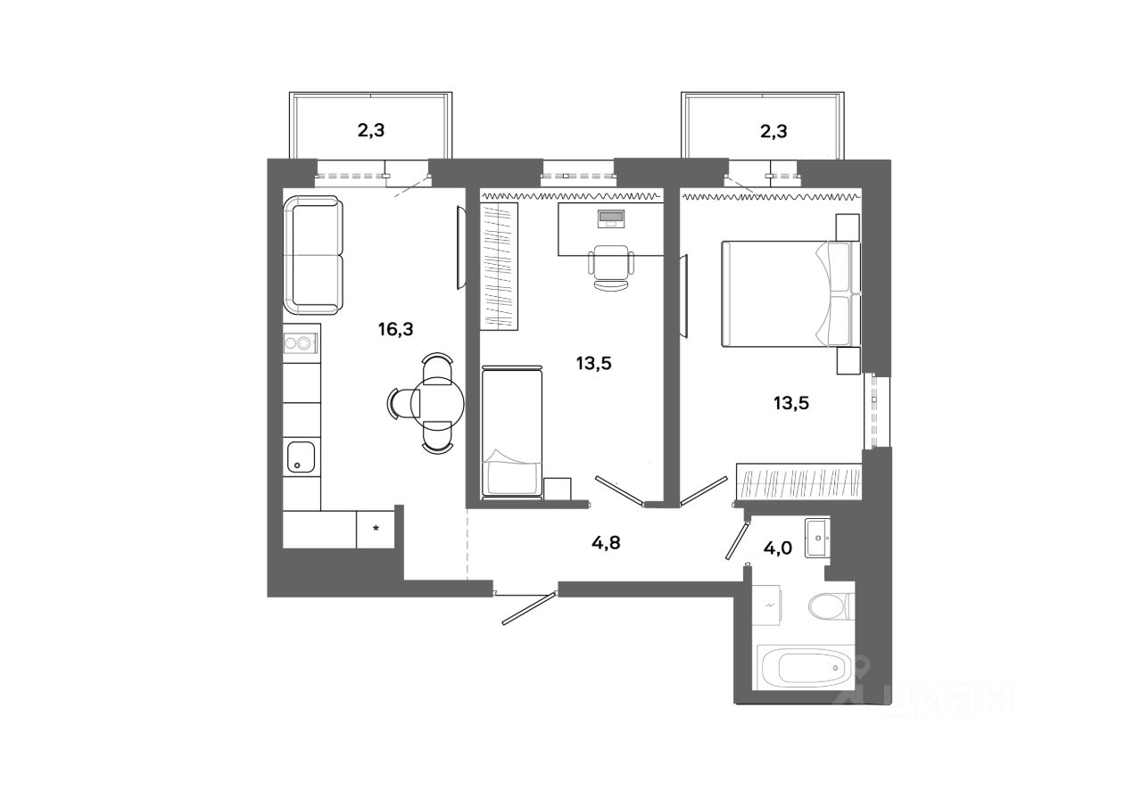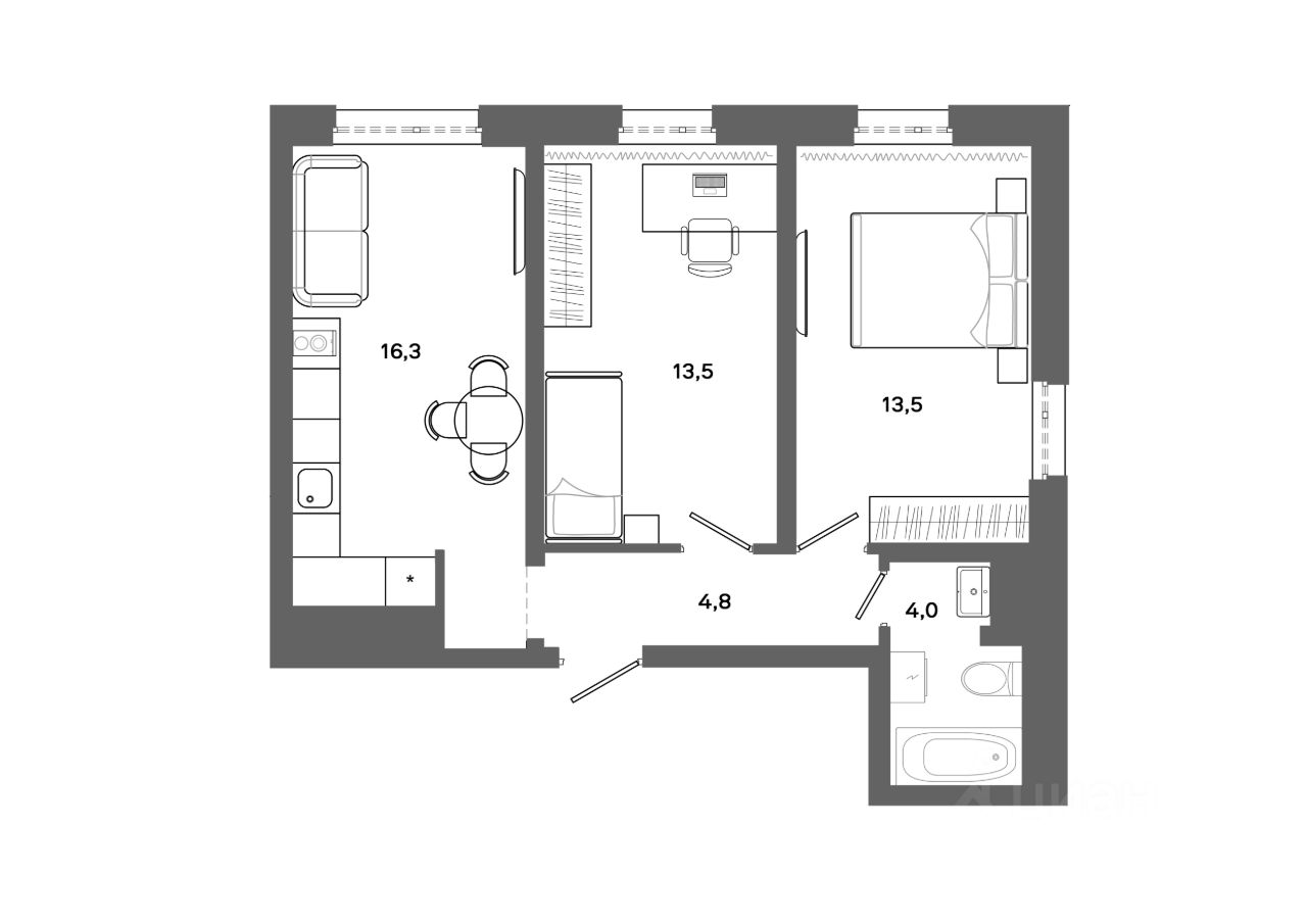 57 м² · Этаж 7 из 16