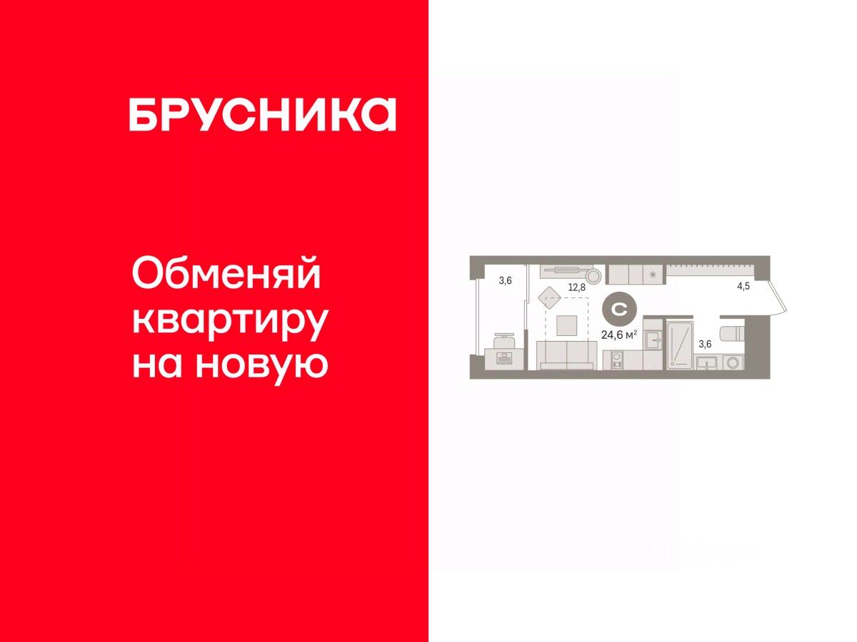 Студия в квартале ''Новин''. Особенности планировки: предчистовая отделка, тёплая лоджия. квартиры в нашей базе: НСВ07-Ж1.10.4.