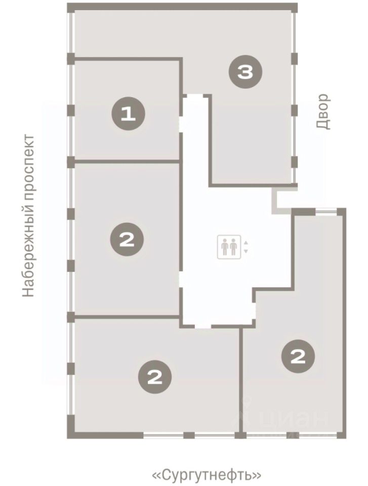 Квартира с кухней-гостиной и тремя спальнями в квартале ''Нефть''. Особенности планировки: окна на две стороны, предчистовая отделка, разнесённые спальни.