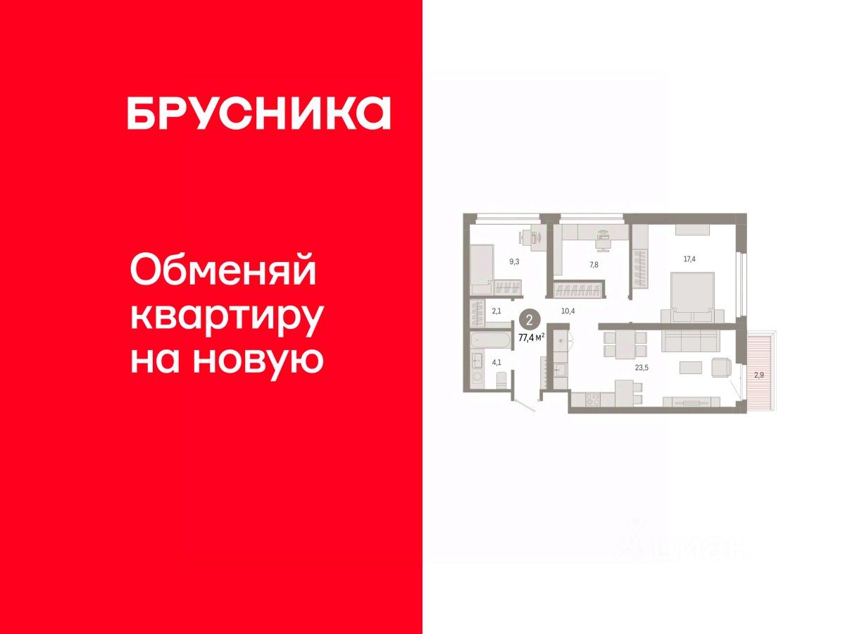 Квартира с кухней-гостиной и двумя спальнями в квартале ''Нефть''. Особенности планировки: балкон, гардеробная, предчистовая отделка, разнесённые спальни. квартиры в нашей базе: НФТ02-Ж3.8.2.