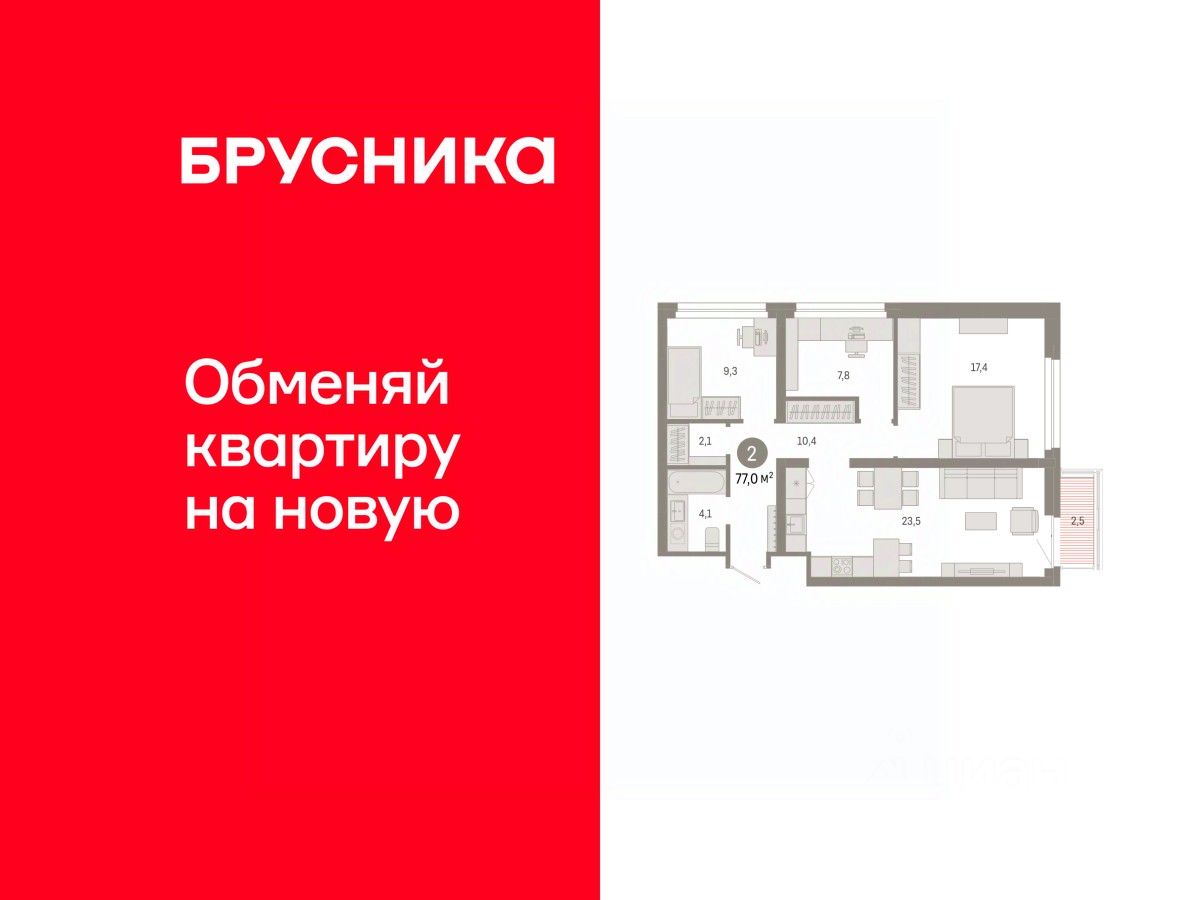 Квартира с кухней-гостиной и двумя спальнями в квартале ''Нефть''. Особенности планировки: предчистовая отделка, рабочий кабинет. квартиры в нашей базе: НФТ02-Ж3.4.2.
