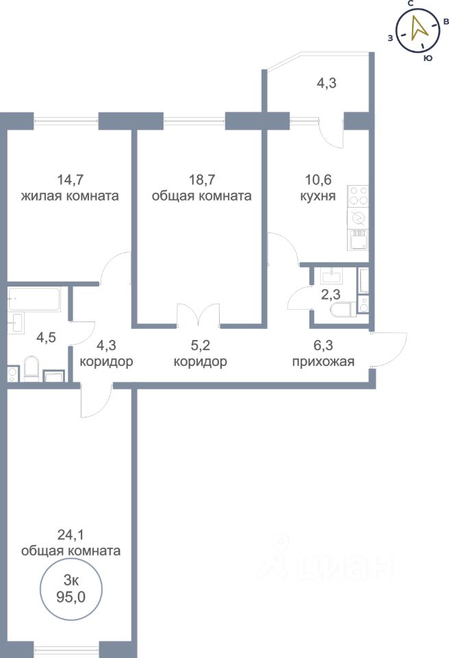 продам 3-к, Югорский тракт, 50/38 955 000 ₽