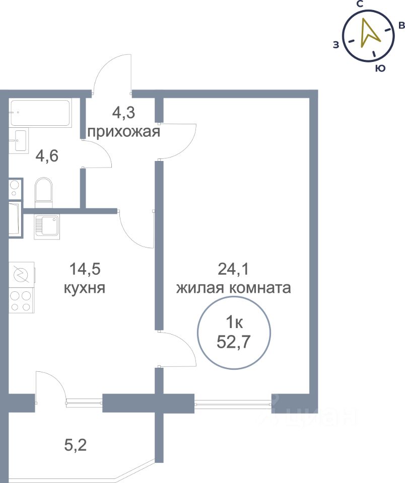 продам 1-к, Югорский тракт, 50/36 595 000 ₽