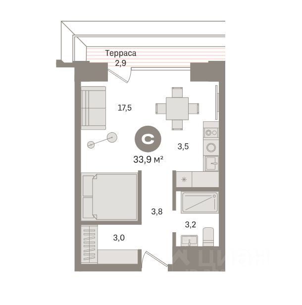 Студия 33.9 м² в VIP ЖК ГУДЗОН (последняя)