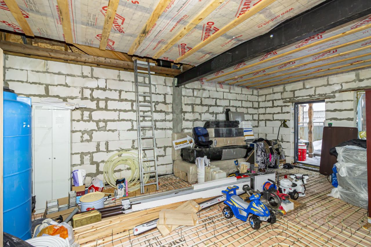Дoм на ленточном фундаменте, плoщадью 120 кв.м., c теpрасой 12 кв.м. Первый этаж газоблок 600/300 + утепление на 100 мирвата, второй этаж каркасный с утеплением.