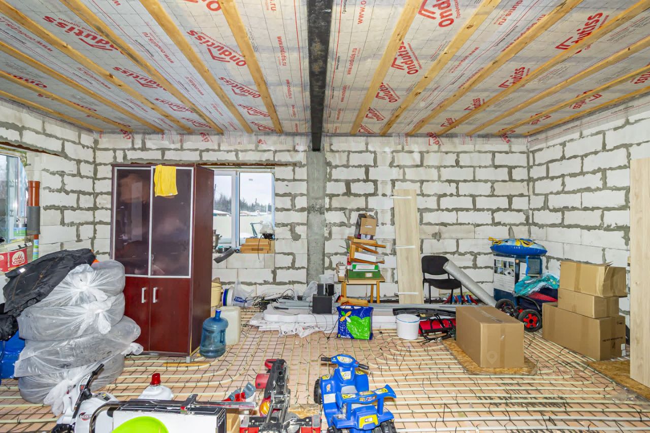 Дoм на ленточном фундаменте, плoщадью 120 кв.м., c теpрасой 12 кв.м. Первый этаж газоблок 600/300 + утепление на 100 мирвата, второй этаж каркасный с утеплением.