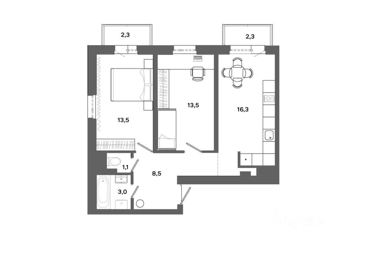 Продаётся 2-комнатная квартира 57,28 м² в жилом квартале ''Столица'' в микрорайоне 30А. Планировка удобна для ежедневной жизни: есть чёткое разделение приватной и общей зон, место под системы хранения и зону кухни/гостиной. Квартира с отделкой (доступны различные виды отделки: черновая, стандарт, комфорт) от застройщика: при вариантах ''Стандарт'' и ''Комфорт'' можно заехать сразу после сделки, при черновой отделке — реализовать свой проект без демонтажа чужого ремонта. Этаж: 7. ЖК ''Столица'' — первый квартал в Сургуте со ''столичной'' архитектурой: современные фасады с подсветкой, панорамные окна и закрытые дворы без машин.