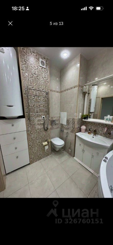 В прихожей установлен вместительный шкаф, сделанный на заказ. Санузел совмещённый, с большой ванной с гидромассажем, инсталляцией, раковиной, зеркалом и бойлером на 80 литров. Тёплый пол делает пространство особенно уютным.