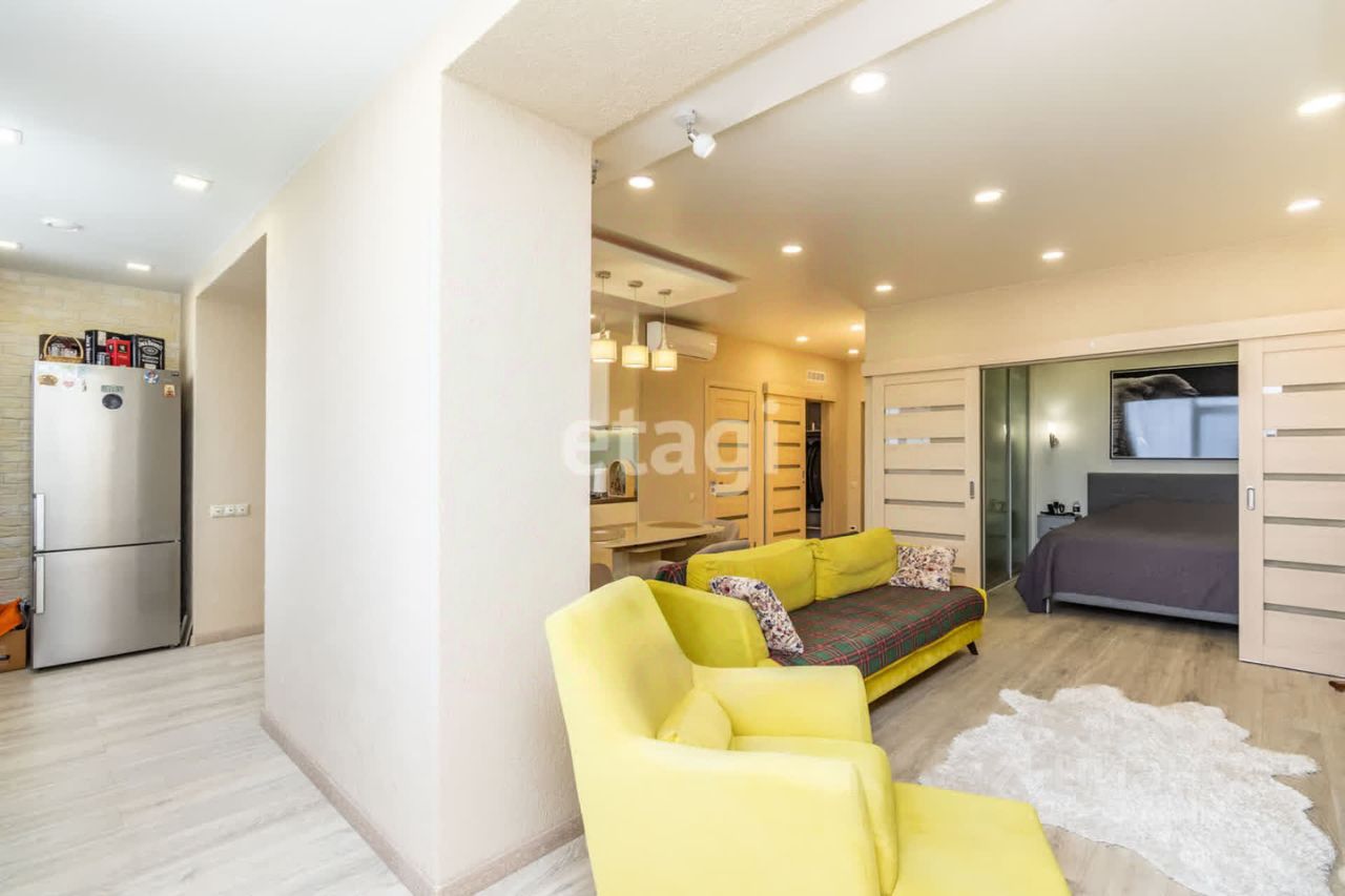 Продаётся стильная 1-комнатная квартира площадью 59 м² (по документам 43,5 м² + объединённая утеплённая лоджия) на 13-м этаже 14-этажного дома в развитом и удобном районе города!