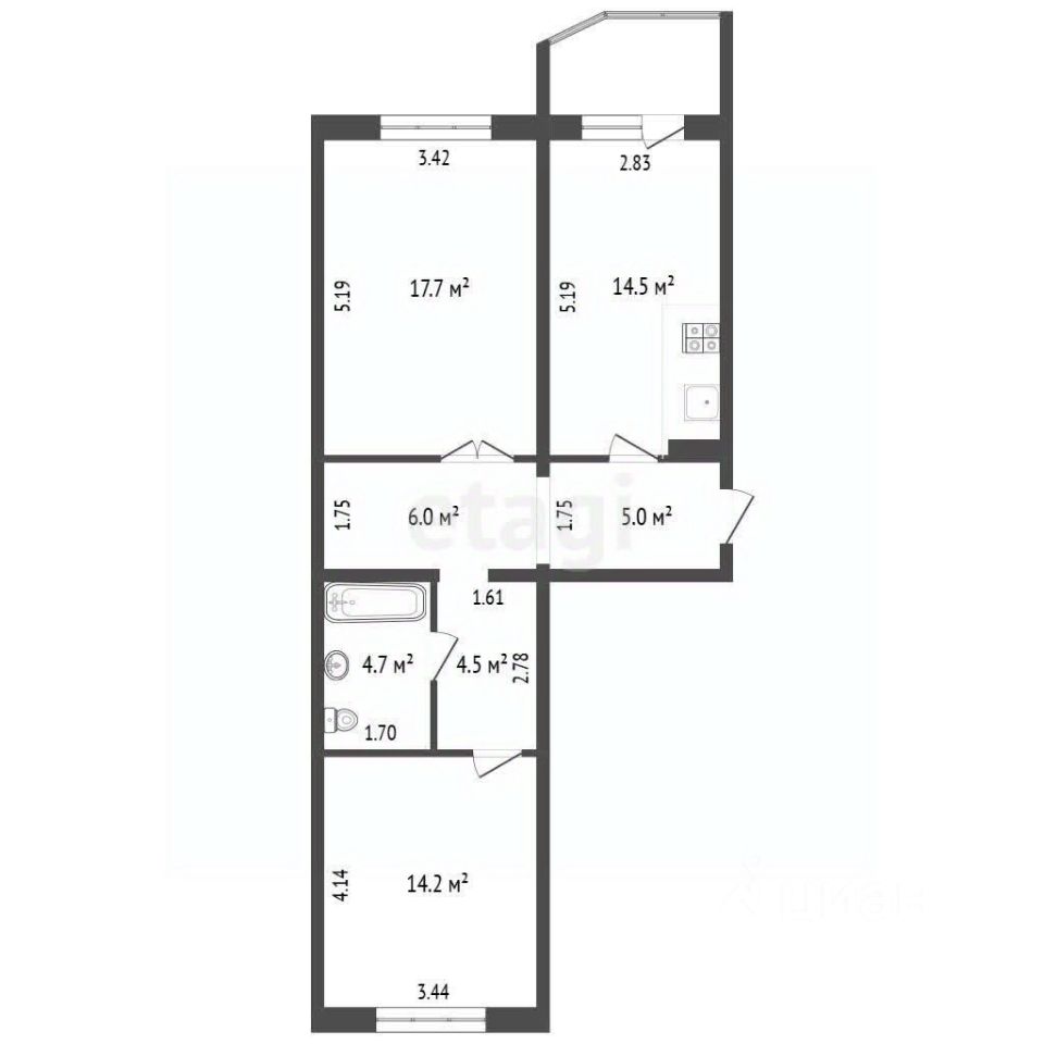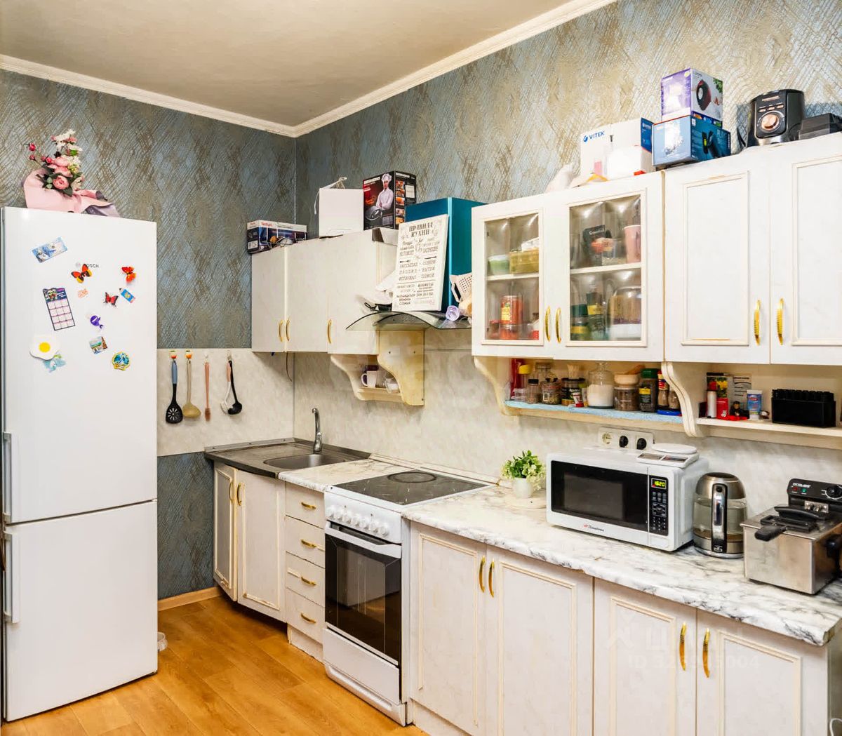 К продаже предлагается квартира улучшенной планировки формата 2+ в жилом доме. Объект состоит из двух изолированных комнат, просторной кухни-гостиной, совмещенного санузла и балкона. В квартире выполнен косметический ремонт: стены оклеены обоями, полы покрыты линолеумом, в санузле уложена керамическая плитка. При продаже остается вся существующая мебель, встроенный кухонный гарнитур и бытовая техника, что позволяет заселиться сразу после сделки. Дом отличается малолюдными подъездами сквозного типа и всего четырьмя квартирами на этаже, что обеспечивает дополнительный комфорт и тишину. Во дворе обустроена детская игровая площадка.