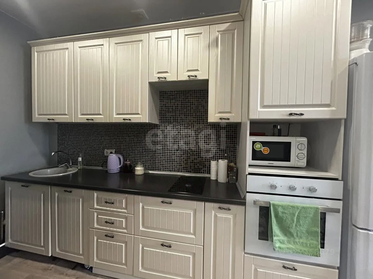 Однокомнатная квартира 43.8 кв.м. с ремонтом, сделана перепланировка образовав кухню-гостиную и отдельную спальню. Сан.узел совмещенный, облицован кафельной плиткой, полноразмерная ванная, место для установки стиральной и сушильной машины. Лоджия утепленная, сделан электрический теплый пол, дополнительно вынесена батарея отопления. Встроенная кухонная зона с техникой. Мебель и техника остается по договоренности. Прямо во дворе расположены детский сад ''Сибирячок'' и средняя школа 9. В квартире поддерживается благоприятный микроклимат — всегда тепло и сухо.